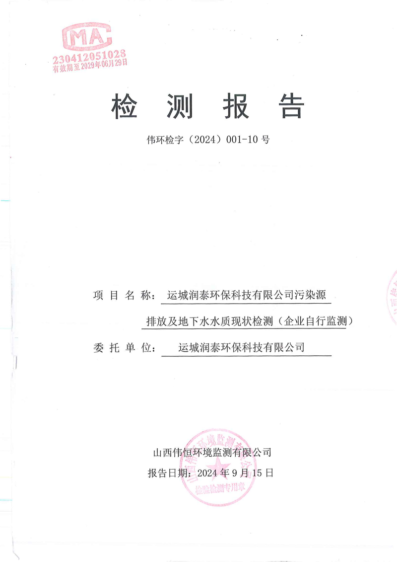 2024年潤泰環(huán)保八月份報(bào)告