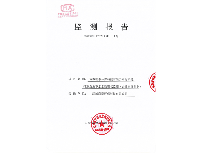 2025年潤泰環(huán)保十一月份自行監(jiān)測報(bào)告