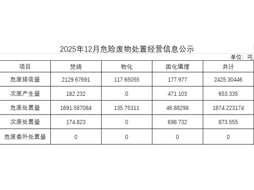 2025年12月危險(xiǎn)廢物處置經(jīng)營信息公示